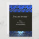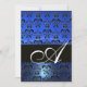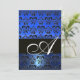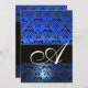 BLUE BLACK DAMASK MONOGRAM ,bright white Invitation