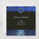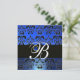 BLUE BLACK DAMASK MONOGRAM SAPPHIRE GOLD METALLIC INVITATION