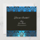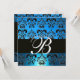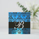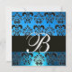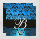 BLUE BLACK DAMASK MONOGRAM , white Invitation