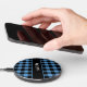 Blue Black Gingham Check Pattern with Name Wireless Charger