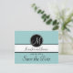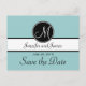 Elegant, Simple, Blue, Black and White Monogram Modern Save the Date Postcards. Elke Clarke © These wedding announcement postcards are shown with a light blue background, white monogram initial on a black circle tag and bride and groom names on a black and white stripe. Customize with bride and groom names and your wedding announcement text, monogram initial, and wedding date using Zazzle's easy to use menu prompts. This simple yet elegant monogram initial design works for all letters of the alphabet and is fully customizable. For other color combinations please contact luxuryweddinginvitations@gmail.com
