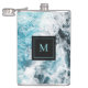 Blue Black Ocean Waves Hawaii Monogram Flask