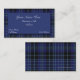 Stately looking business card template, done in a traditional Scottish Tartan Plaid of the Clark clan. A solid blue text area over the black, white, and blue plaid, has white colored text. Personalize all the text to suit your needs.