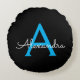 Black and Blue Simple Script Monogram Name Pouf Pillow. The pillow makes the perfect sweet 16 birthday, wedding, bridal shower, baby shower or bachelorette party gift for someone decorating her room in rose gold.