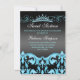 Blue/Black Sweet16 Damask & Tiara Birthday Invite