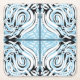 Blue Black White Curvy Abstract Pattern Square Paper Coaster