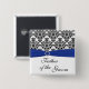 Blue Black White Damask Father of the Groom Pin
