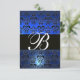 BLUE BLACK WHITE DAMASK MONOGRAM RSVP INVITATION