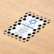 Soccer themed Bar Mitzvah acrylic invitation with a soccer ball background and blue accents. This soccer acrylic plastic Bar Mitzvah invitation is stylish and modern. This soccer themed Bar Mitzvah acrylic invitation features a black and white soccer ball pattern background with a Jewish Star of David. The colors on this unique soccer themed Bar Mitzvah design are blue, black, and white. Your son's name is in a bold sports style font.