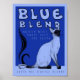 Perky cat in blue on an advertisement for Blue Blend Coffee.