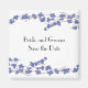 Elegant blue colored blossoms on delicate branches. A background of white accents the bride and groom's names and wedding date. Customize as desired.
