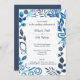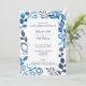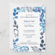 Blue, Bluish Gray Floral Pattern Frame Wedding Invitation