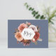 Elegant RSVP card with blush pink, ivory, peach, rose gold burgundy and dusty rose watercolor floral details in both front and back. Elegant dusty blue background on the front. Ability to add meal options or delete it. Part of our "Heaven in Rose and dusty blue floral" wedding and events collection.
