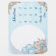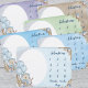 Cute little bear in blue jacket with ragdoll bunny and dried floral sitting in front of a crescent moon. This Boho design is a great backdrop for social media sharing of child's milestone moments. Personalize with child's name. Includes milestones Months, Weeks, Days and numbers 1 to 12. Back is white. Background can be changed to any color of your choosing in the Editor; great for matching with nursery decor.