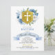 Blue Boho Floral and Gold Crest Baptism Invitation