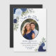 Blue Boho Floral & Photo Wedding Save the Date Magnetic Invitation