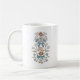 Boho and rustic mug featuring hand drawn illustration of bows and flowers in blue.