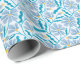 Blue Boho Mid Century Modern Floral Pattern Wrapping Paper