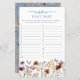 Blue Boho Name That Baby Game. Challenge your guests with this Name That Baby Game, a fun and engaging activity for your baby shower. The front features elegant dusty blue script, guiding players to match baby names with their celebrity parents or complete classic nursery rhymes. The back is adorned with a coordinating pattern of boho butterflies, vintage wildflowers, dried grasses, and soft sage green foliage on a dusty blue background, ensuring a polished and stylish look. The warm earthy tones of tan, brown, rust, terracotta, burnt orange, and muted sage green make this game perfect for any spring, summer, fall, or winter baby shower. Whether guests are trivia pros or just in it for fun, this beautifully designed game will surely bring joy and friendly competition to your celebration!