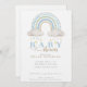 Blue Boho Watercolor Rainbow Boy Baby Shower Invitation
