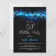 Blue Bokeh Black 30th Birthday Party Invitation
