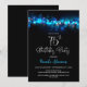 Blue Bokeh Black 75th Birthday Party Invitation