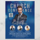 Religious Church Conference Service Event Flyer Features Blue Bokeh Background & Silver Gradient Textured Typography. Customize Flyer To Your Liking.