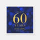 Elegant napkin featuring the words "Cheers to 60 Years" in faux gold foil against a sapphire blue bokeh lights pattern background.