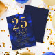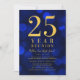 Classy class reunion invitation featuring the words "25 Year Reunion" in faux gold foil against a blue bokeh lights pattern background. Invitation has a blue background back side.