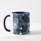 Stylish ringer mug features an abstract cyanotype with a lovely mix of light to dark blue overlapping translucent circles. "Bokeh" is a Japanese word which describes a pleasing pattern in the out-of-focus areas of a photograph. The dots are referred to as "circles of confusion" in photography.