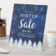 Blue Bokeh Snowy Winter Sale Retail Advertisement Pedestal Sign