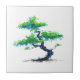 traditional watercolor painting of a little japanese bonsai tree in vibrant green and blue colors on a ceramic tile