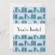 A pattern in shades of blue featuring lots of reading books on a book shelf, this is a pattern style illustration of book shelves in a library, book store, or the home of a bibliophile.