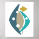 This mid century modern artwork features boomerangs, circles, and diamond shapes in a combination of the colors turquoise, blue, tan, gold,, and black. This will make a fabulous statement on your walls.
