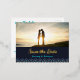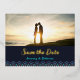 Save the date postcard with space for photo and has an elegant blue background. Customize.