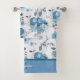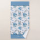 Blue Border Monogram Floral Pattern Bath Towel Set