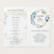 Blue Botanical Folded Ceremony Wedding Program