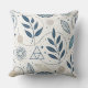 A seamless pattern throw pillow combining stylized botanical and geometric elements in calming shades of blue, white, and muted beige. Featuring hand-drawn leaves, abstract floral motifs, concentric circles, triangles, stars, and dotted accents, this design blends organic and celestial themes. Its clean, minimal, and doodle-inspired style makes it ideal for modern home décor lovers, botanical art fans, and creatives who enjoy a serene aesthetic. Perfect gift for artists, designers, and anyone who appreciates elegant patterns. Ideal for spring, summer, nature-inspired events, and everyday décor.