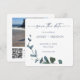 Blue Botanical Leaf Save the Date w/QR Code+Image Invitation