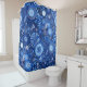 Imagine stepping into a bathroom that instantly transports you to a world of deep serenity and artistic elegance. This stunning shower curtain features an intricate, abstract floral design in mesmerizing shades of blue. Reminiscent of traditional shibori dyeing techniques and modern botanical motifs, it blends organic shapes with geometric precision, creating a dynamic yet harmonious pattern.