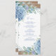 This romantic wedding design features soft watercolor hydrangeas in dusty blue tones, elegantly arranged on a rustic textured background. Delicate botanical details and classic typography create a timeless and charming look, ideal for countryside or garden weddings. Customizable wedding details adds a personal, elegant touch.