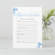 Blue Bow Advice and Wishes Bridal Shower Game Invitation
