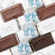 This mini chocolate bar wrapper design features a sweet and simple layout with a soft watercolor blue bow placed on the right side for a cute, classic touch. On the left, the mom-to-be’s name and the phrase “Baby Shower” are printed in a classic gray serif font, creating an elegant and minimal look.