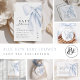 Blue Bow Baby Shower Menu. Featuring a delicate light blue bow and romantic script.