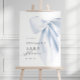 Welcome your guests with this Blue Bow Baby Shower Welcome Sign, featuring a sophisticated light blue bow and elegant script. This sign sets the tone for a whimsical and charming baby shower, making your event unforgettable from the moment guests arrive.