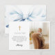 Blue Bow Baptism Photo Flat Thank You Card