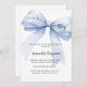 An elegant white background, decorated with a large blue bow. Personalize and add a name and party details.