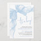 It’s A Boy! Baby Shower Invitation. This sweet and playful design features a soft dusty blue watercolor bow with a ribbon frame accenting the top and left side, adding a charming and whimsical touch. The phrase “It’s A Boy!” is displayed at the top in elegant script, setting the tone for a joyful celebration.
