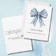 Adorable cute blue bow boy baby shower thank you card. Personalize it with two lines of text on the front. Write your message on the back.