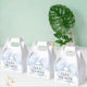 Cute favor boxes to thank your shower guests featuring a large blue watercolor bow angled to the side on the front and back of the favor box. Stylish type face pairings include a modern display font and elegant serif. This item is a great choice for the mother-to-be who is expecting a baby boy. Personalize the easy to use text template with the guest of honor's name. Available in several sizes, shown here in the largest size available which is Gable 5x3 inches x 6.5 inches.